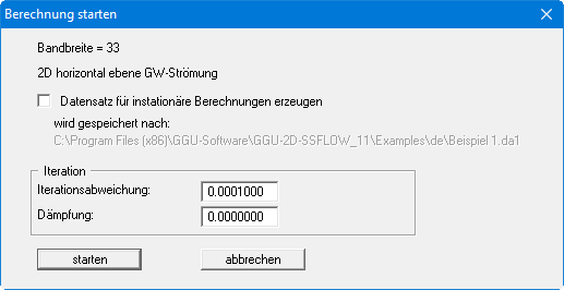GGU-2D-SSFLOW: Schritt 9: System berechnen (Beispiel 1)