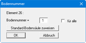Wenn der Schalter "für alle" aktiviert ist, wird allen Dreiecksprismen diese Bodennummer zugeordnet. Ansonsten erfolgt die Zuordnung nur für das Dreiecksprisma in der aktuellen Schicht, in der Sie sich gerade befinden. Wenn Sie den Knopf "Standard-Bodensäule zuweisen" wählen, erhalten alle ausgewählten Elemente die Standard-Bodensäule.