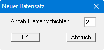Starten Sie das Programm GGU-3D-SSFLOW und wählen Sie den Menüeintrag "Datei / Neu". Da Sie für dieses Beispiel nicht über "Gängige Systeme" gehen sollen, verneinen Sie die Abfrage und geben die Anzahl der Elementschichten ein.