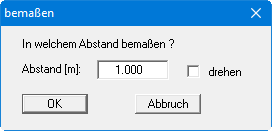 Die Bemaßungslinie wird bei einem positiv eingegebenen Abstand oberhalb der angeklickten Linie gezeichnet, das Programm erkennt dabei den Anfangs- und Endpunkt und damit die ursprüngliche Zeichenrichtung der ausgewählten Linie. Wenn die Schriftrichtung der Bemaßung um 180° gedreht werden soll, aktivieren Sie zusätzlich die Box "drehen". Mit einem negativen Abstand wird die Bemaßungslinie unterhalb der ausgewählten Linie gezeichnet. Die Bemaßung wird nur übernommen, wenn Sie nach Verlassen der obigen Dialogbox die dann folgende Abfrage bejahen, ansonsten wird die Bemaßung wieder gelöscht.