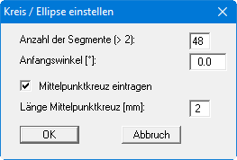 Jeder Kreis und jede Ellipse wird aus einer bestimmten Anzahl von Polygonlinien konstruiert. In der Dialogbox dieses Menüeintrages können Sie die Anzahl dieser Segmente vorgeben.