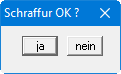 Wenn Sie in der Box "Edit" auswählen, können Sie durch Anklicken von weiteren Linienobjekten den selektierten Polygonzug erweitern bzw. aufgenommene Linien aus dem selektierten Polygonzug entfernen. Auch können jetzt noch Änderungen der Grundeinstellungen (Menüeintrag "Einstellen / Schraffur" s.u.) vorgenommen werden. Haben Sie Ihre Editierarbeit abgeschlossen, zeigen Sie dem Programm das durch einen Klick auf die rechte Maustaste an. Anschließend erfolgt wieder die obige Abfrage "Polygon OK ?". Wenn Sie dies bestätigen, wird die Schraffur gezeichnet und es erscheint ein weiteres Abfragefenster: