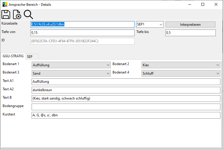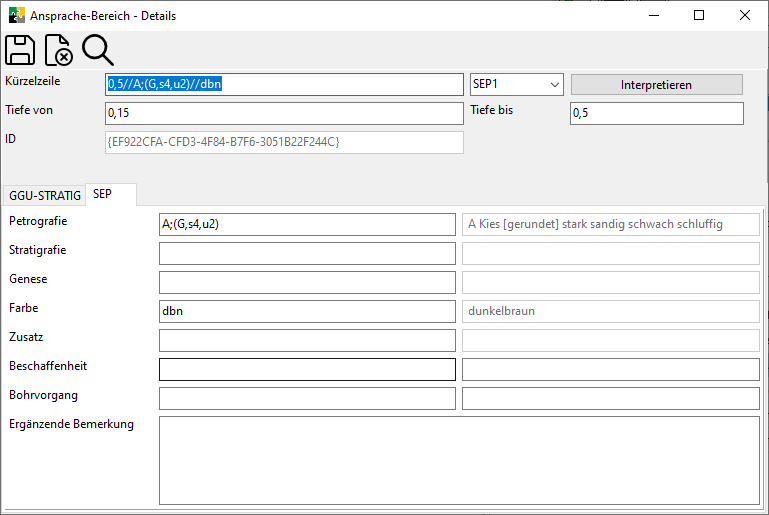 Unter diesem Tab finden sich die Ergebnisse von durchgeführten Laborversuchen zu Proben, die sich im gleichen Höhenabschnitt befinden wie der aktuelle Ansprachebereich.