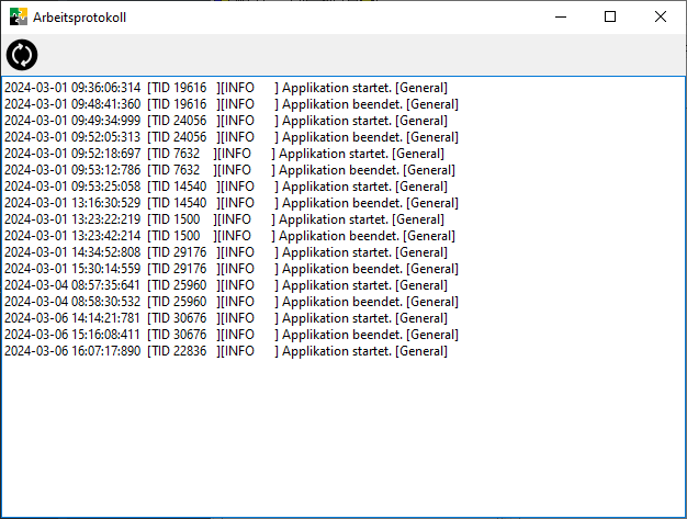 Öffnet einen Dialog mit Auflistung der letzten Aktivitäten des Programms, insbesondere Fehler und Warnungnen.