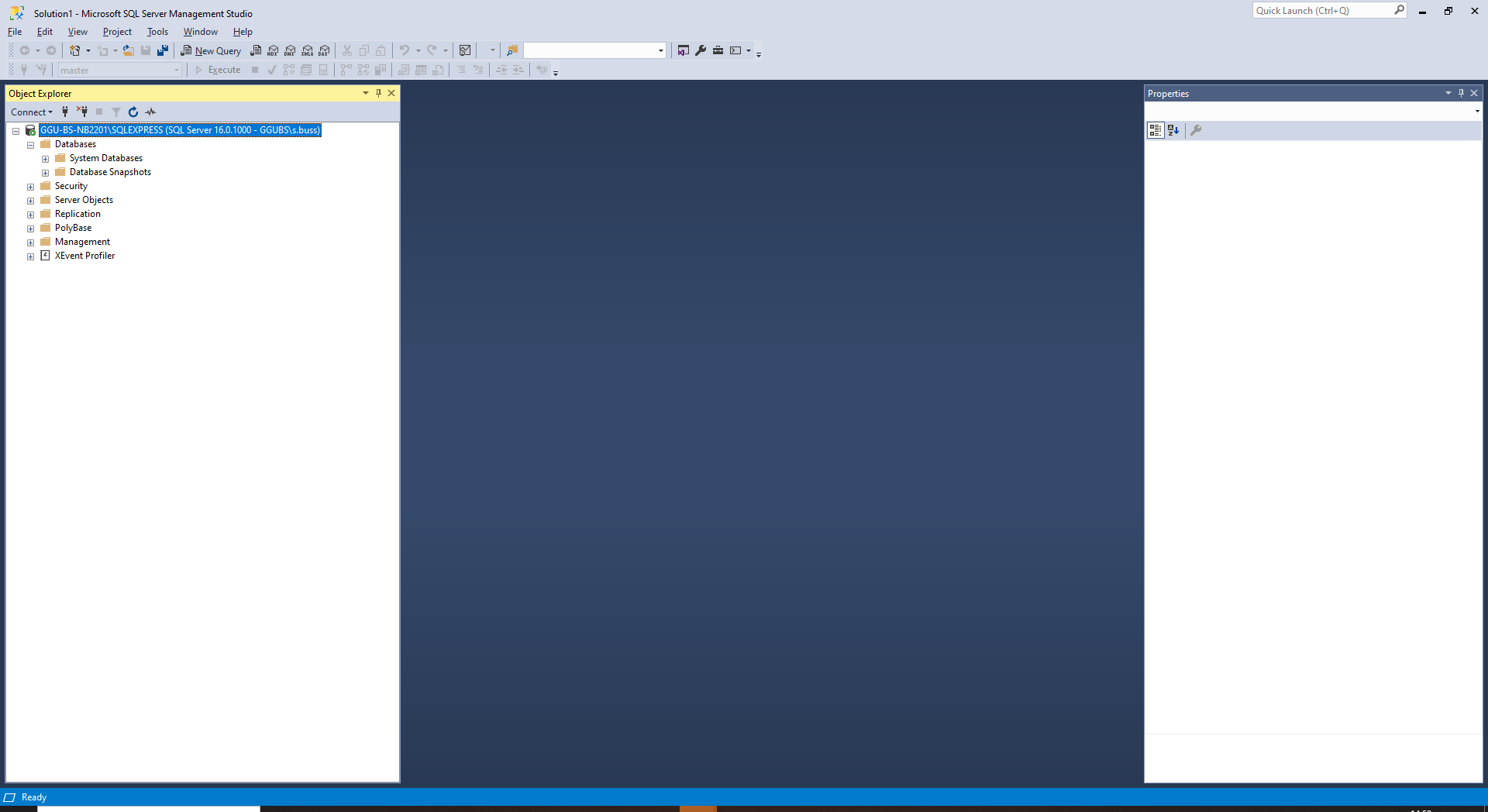 In Programm “Microsoft SQL Server Management Studio” mit der Datenbank verbinden (<Rechnername>\SQLEXPRESS)