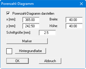 In der Dialogbox dieses Menüeintrages können Sie nach Aktivierung des Knopfes "Porenzahl-Diagramm darstellen" die Darstellungsform der Grafik auf Ihrem Ausgabeblatt verändern.