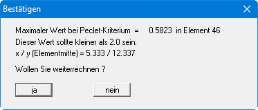 Nach der Anwahl des "OK"-Knopfes nimmt das Programm einige Überprüfungen vor. Zunächst wird das Peclet-Kriterium überprüft.