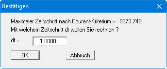 Danach erfolgt eine Überprüfung des Courant-Kriteriums mit der Angabe des optimalen Zeitschritts.