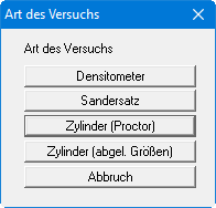 Sie können zwischen vier Verfahren zur Dichtebestimmung wählen. Wenn Sie auf den Knopf mit dem gewünschten Verfahren klicken, erhalten Sie ein leeres Formblatt gemäß DIN 18125-2.