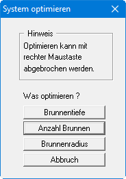 Das Programm besitzt verschiedene Optimierungsroutinen. Wenn Sie diesen Menüeintrag auswählen oder die Funktionstaste [F6] klicken, erhalten Sie daher zunächst eine Auswahlbox: