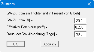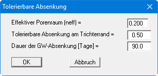 Einflussbereich in Abhängigkeit von der tolerierbaren Absenkung am Trichterrand.