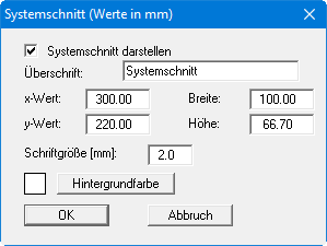 Sie können eine Legende in die Grafik aufnehmen, die einen Systemschnitt enthält. Form und Aussehen dieser Legende können verändert werden, wenn Sie den Schalter "Systemschnitt darstellen" aktiviert haben.
