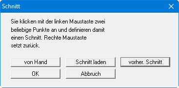 Nach Anwahl dieses Menüeintrages erhalten Sie eine Dialogbox mit einer Erläuterung zur Vorgehensweise bei der Schnittfestlegung: