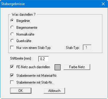 Im unteren Bereich können Sie die bekannten Einstellungen zur Darstellung treffen, hier erweitert um den Schalter für die Darstellung der "Stabelemente mit Material-Nr.".