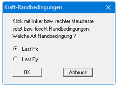 Mit diesem Menüeintrag werden analog zu den Weg-Randbedingungen die Einzellasten im FE-System vereinbart.