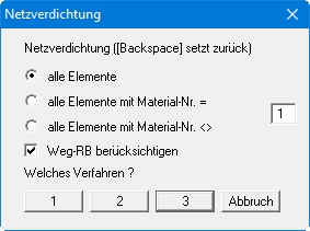 Wählen Sie nun den Menüeintrag "FE-Netz / alle (verdichten)" und betätigen Sie den Knopf "3".
