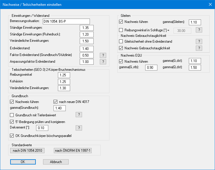 Des Weiteren haben Sie die Möglichkeit, über den Knopf "nach ÖNORM EN 1997-1" die Teilsicherheiten nach österreichischer Norm auszuwählen.