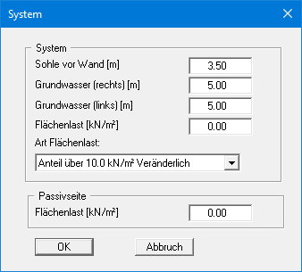 Die Verkehrslast des Beispielsystems von 5 kN/m² wird später unter dem Menüeintrag "Editor 1 / Bermen (Aktivseite)" eingegeben.