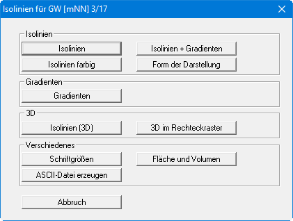 GGU-GEO-GRAPH: Auswahl von Messwert und Art der Isolinien