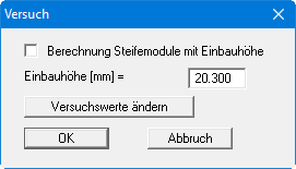 Es bestehen unterschiedliche Auffassungen darüber, ob die Steifemodule bei jeder Laststufe mit der Einbauhöhe berechnet werden müssen oder ob jeweils die Höhe vor Beginn der Laststufe einzusetzen ist. Über den Schalter "Berechnung Steifemodule mit Einbauhöhe" können Sie Ihre persönliche Einstellung dazu umsetzen.