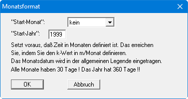 Besonders bei jahreszeitlich abhängigen Eingangsgrößen ist es sinnvoll, den Zeitablauf als Monatsformat darzustellen. Weitere Erläuterungen finden Sie in der dazugehörigen Dialogbox.