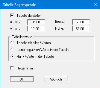 Am schnellsten können Sie die Position oder Größe der Regenspenden-Tabelle verändern, indem Sie die Funktionstaste [F11] drücken und anschließend die Tabelle mit der gedrückten linken Maustaste an die gewünschte Position ziehen oder die Seiten verschieben.