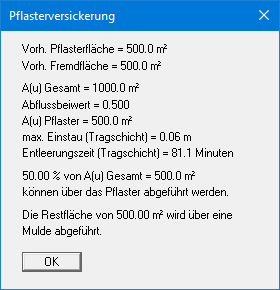 Das Pflaster wird entsprechend einer Flächenversickerung nach DWA bemessen. Die für das Pflaster angeschlossene Fläche A(u)(Pflaster) ergibt sich aus: