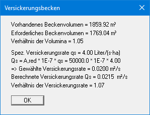 Starten Sie die Berechnung des Versickerungsbeckens über den Menüeintrag "System / berechnen". Sie erhalten das Ergebnis der Berechnung: