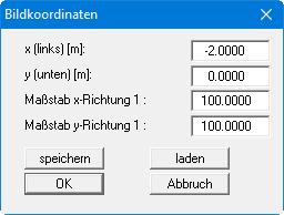 Nach diesen Vorarbeiten können Sie nun die Lage von Dreiecksknoten (Bohrpunkte) festlegen. Auf dem Bildschirm ist ein Koordinatensystem sichtbar. Falls der dargestellte Bereich nicht dem Grundrissbereich Ihres Systems entspricht, gehen Sie zum Menüeintrag "Blatt / von Hand" und geben Sie in der Dialogbox die erforderlichen Werte für Ihr System ein.
