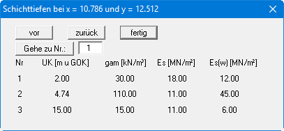 GGU-SETTLE: Menüeintrag "(Schichttiefen) bestimmen"