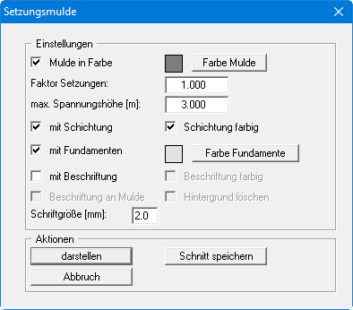 Mit diesem Menüeintrag können Sie die Darstellung der Setzungsmulde beeinflussen. Sie erhalten die folgende Dialogbox: