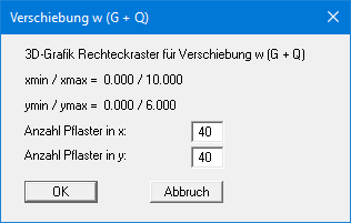 Nach Verlassen der Dialogbox mit "OK" erhalten Sie zunächst die gleiche Box wie unter "Auswerten / 3D". Das Programm berechnet aus den Ergebnissen der FE-Berechnung durch lineare Interpolation die Zustandsgrößen an den Rasterpunkten. Danach erhalten Sie Dialogbox zur Einstellung der farbigen Isoliniendarstellung wie unter "Auswerten / 3D" beschrieben.