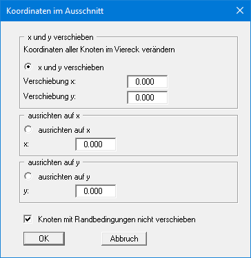 Durch Aktivierung des Schalters "Knoten mit Randbedingungen nicht verschieben" werden diese Punkte von einer Verschiebung ausgenommen.