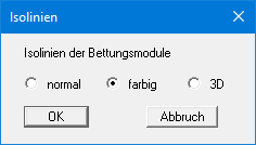 Mit den Schaltern "normal", "farbig" und "3D" legen Sie die Form der Isolinien fest.