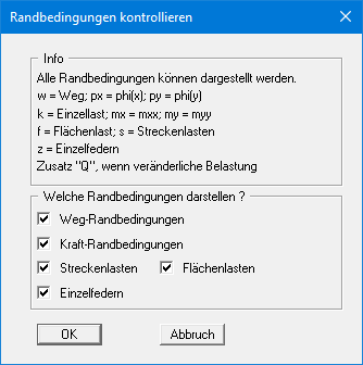 Sie können sich mit diesem Menüeintrag einen guten Überblick über die Lage aller Randbedingungen verschaffen, in dem Sie die gewünschten Randbedingungen am Bildschirm darstellen lassen.