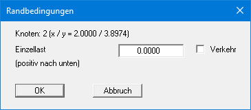 Bei aktiviertem Schalter "Nur vertikale Einzellasten ändern" erhalten Sie die folgende Eingabebox, mit der Sie etwas schneller eine Einzellast für den angeklickten Knoten setzen können.