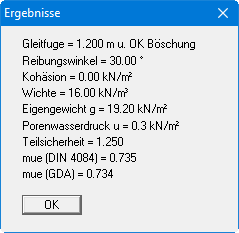 Sie erhalten eine Infobox mit dem Ergebnis der Berechnung der von Ihnen festgelegten Gleitfuge.
