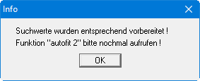 Bei "Nein" ist die Aktion "autofit 2" abgeschlossen, und Sie sehen die Typkurven auf Ihrem Arbeitsblatt dargestellt. Wenn Sie die Frage mit "Ja" beantworten, erhalten Sie zunächst die folgende Infobox, die Sie durch Klicken auf "OK" verlassen.
