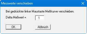 Je größer Sie das "Delta Meßwert" wählen, desto schneller erfolgt die Verschiebung der Datenkurve. Bei besonders großen Datensätzen müssen Sie dabei etwas Geduld mitbringen.
