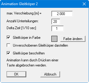 GGU-STABILITY: Menüeintrag "Animation" (nur bei Starrkörperbruchmechanismen und Blockgleitmethode)