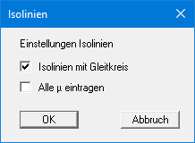 GGU-STABILITY: Menüeintrag "Isolinien" (Gleitkreise)
