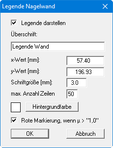 Bei einer Nagelwandberechnung wird eine Legende in der Grafik dargestellt, wenn der Schalter "Legende darstellen" aktiviert ist.