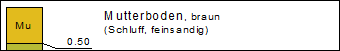 Bei dieser Darstellung wird der Text A1 gesondert in der ersten Zeile dargestellt. Die Texte A2 und B werden ab der zweiten Zeile hintereinander weg über mehrere Zeilen ausgegeben. Analog zum einfachen "mehrzeilig" erfolgt der Zeilenumbruch nach der eingetragenen Anzahl von Buchstaben. Bei dieser Auswahl werden wieder die vorgegebenen Schriftgrößen der einzelnen Textzeilen verwendet. Sie können also die Hauptbodenart durch die gesonderte Darstellung und die größere Schriftart besonders hervorheben.