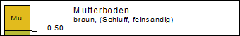 Mit diesem Schalter können Sie den Abstand der Textausgabe zum Bohrprofil einstellen. Wenn Sie den Schalter aktivieren, beginnt die Schichtbeschreibung ca. 5 mm neben dem Bohrprofil, also innerhalb der Tiefenbeschriftung. Bei deaktiviertem Schalter wird ca. 3 mm neben der Tiefenbeschriftung der Schicht mit dem Text begonnen (s.o. bei "einzeilig").