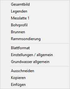 Mit Doppelklick über ein Bohrprofil, über einen Brunnen, einen Mehrfachpegel, eine Rammsondierung, eine Drucksondierung, ein Messwertdiagramm oder eine Tabelle wird die entsprechende Dialogbox "Grunddaten" aufgerufen.