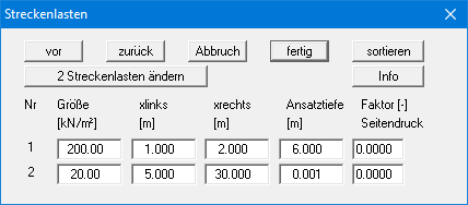Mit dem Knopf "sortieren" werden die Streckenlasten nach den Ansatztiefen sortiert.