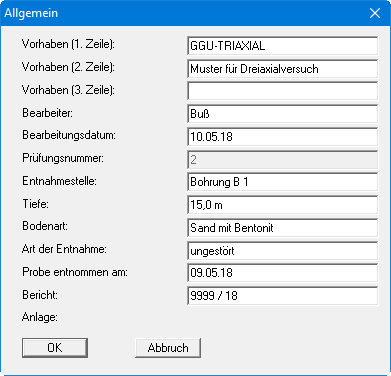 GGU-TRIAXIAL: Menüeintrag "Allgemein"