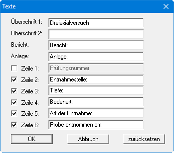 GGU-TRIAXIAL: Menüeintrag "Texte"
