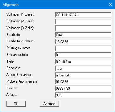 GGU-UNIAXIAL: Menüeintrag "Allgemein"