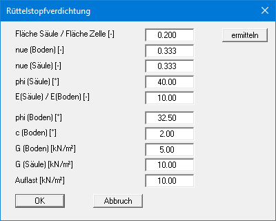 Über diesen Menüeintrag können Sie mit verschiedenen Bodenkennwerten die Verbesserung über eine Rüttelstopfverdichtung testen.
